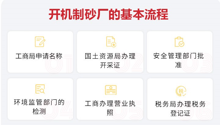 工商局申請名稱→國土資源局辦理開采證→安全管理部門批準→環(huán)境監(jiān)管部門的檢測→工商辦理營業(yè)執(zhí)照→稅務局辦理稅務登記證。