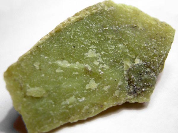 蛇紋石質玉形態呈細膩的致密塊體,少數為纖維狀塊體。蛇紋石質玉顏色的變化與色素離子種類不同和含量的變化密切相關,常見有白、黃、綠、黃綠、藍綠、褐、褐紅、暗綠和暗黑等色。